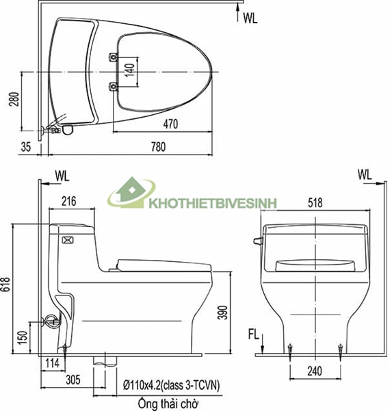 Thông số kĩ thuật Bồn cầu 1 khối cao cấp INAX AC-4005VN