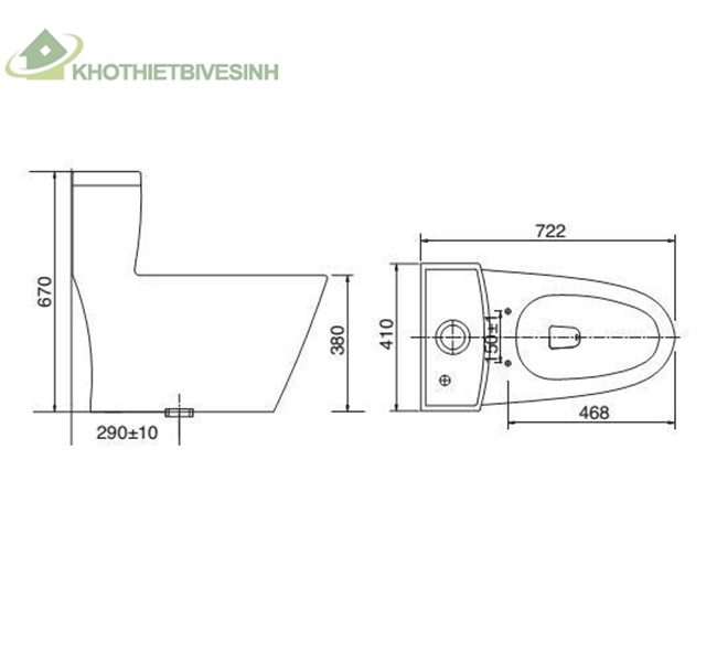Bản vẽ Bồn Cầu Viglacera 1 Khối V62 Xả Nhấn