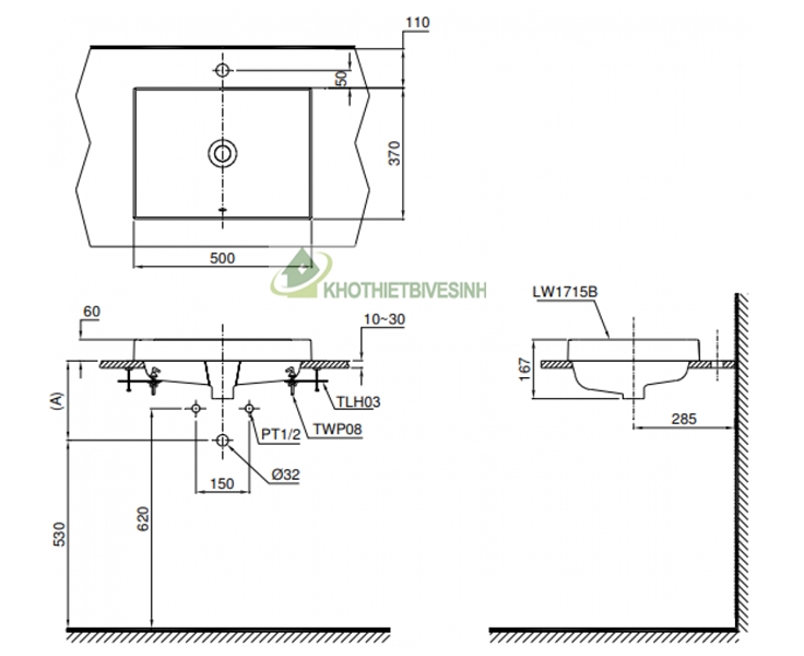 Bản vẽ kỹ thuật chậu lavabo Toto L1715